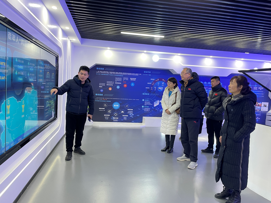 三卿科技董事长黄金龙对丁自勉一行的到来表示热烈欢迎,从企业关注的毕业生的能力素质情况、用人需求、智慧健康养老服务产教融合实训平台等方面进行了详细介绍,并一同参观了三卿科技数字健康城市品牌馆。在展厅中,大家详细了解了安徽三卿健康科技公司在慢病管理、儿童托育体适能、家庭养老、社区养老、健康小屋、精准健康管理、企业健康管理、乡村健康、四医联动等数字健康解决方案上的前沿探索和实践。