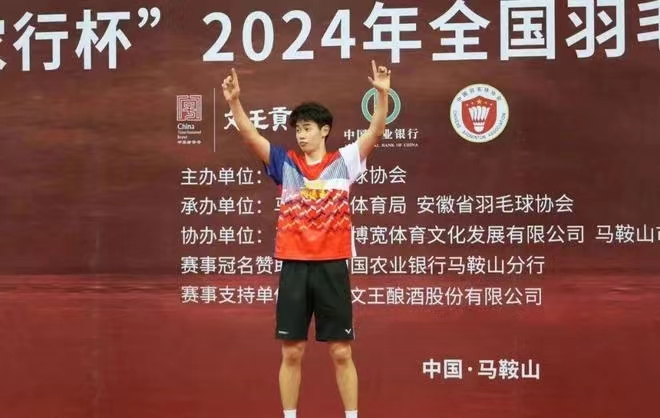 4月21日,2024年全国羽毛球单项冠军赛在马鞍山完赛,共决出五个单项的冠军,安徽队董天尧战胜对手勇夺男子单打冠军。