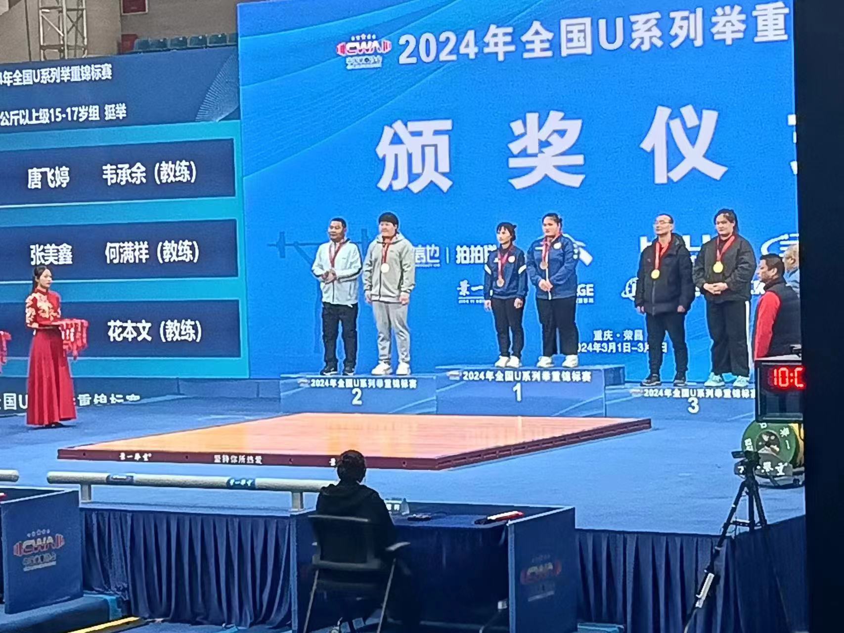 3月1日至8日,2024年全国U系列举重锦标赛在重庆市荣昌区体育馆举行,来自全国各地的43支队伍、646名教练员、运动员参与赛事角逐。我校2022级学生经梦瑒表现出色,获得1金2铜的亮眼成绩。