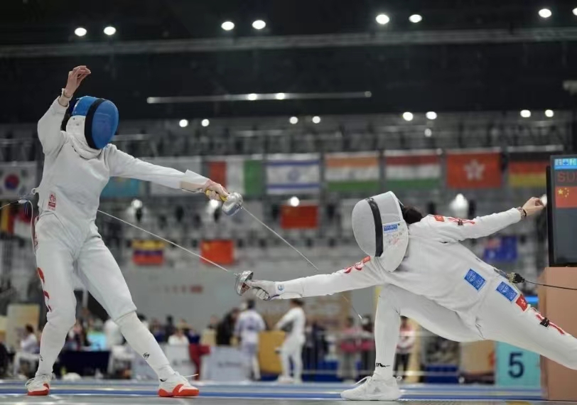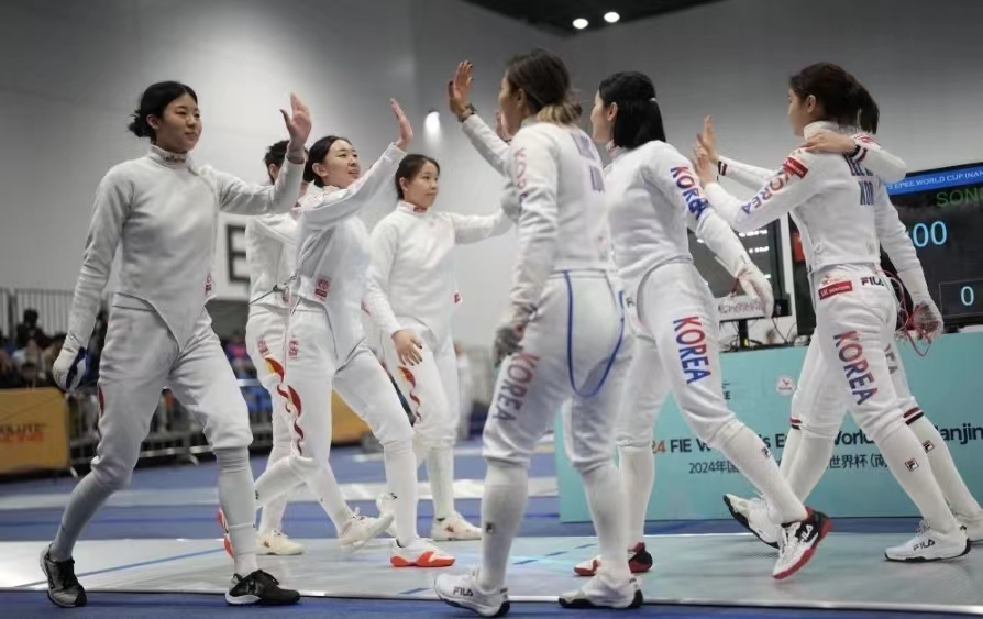 3月24日下午,中国女子重剑队战胜实力强大的韩国队,晋级南京女子重剑世界杯团体赛四强。这场胜利,也确保中国女子重剑队拿到巴黎奥运会团体参赛席位。