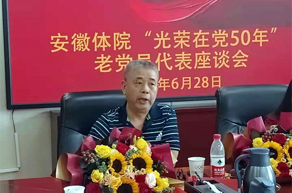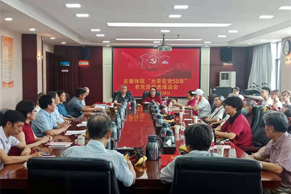 6月28日上午,安徽体院“光荣在党50年”老党员座谈会在行政楼五楼召开。院领导班子及相关职能部门负责人、学生党员代表等参加座谈会,副院长李家稳主持会议。
