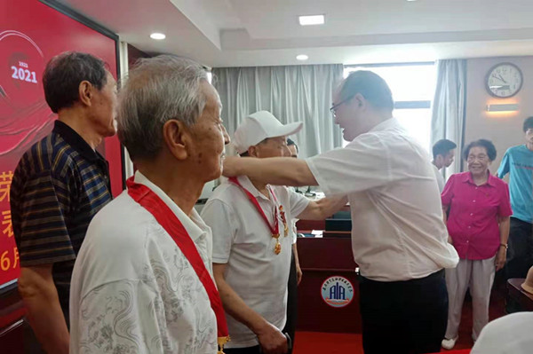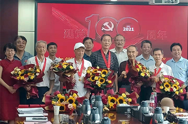 丁自勉在讲话中指出,在建党100周年之际,党中央决定为党龄50年以上的党员颁授纪念章,充分体现了以习近平同志为核心的党中央对老党员的政治关怀和尊崇厚待,体现了党和人民对老党员历史贡献的高度评价和充分肯定。老党员是我们党发展壮大的亲历者和见证人,是党和国家的重要资源,也是学院事业发展的宝贵财富。希望老党员老干部继续弘扬共产党人的优秀品质,坚持离岗不离党、退休不褪色,更好发挥政治优势、经验优势、威望优势,一如既往地为学院事业发展献计献策、发光发热。