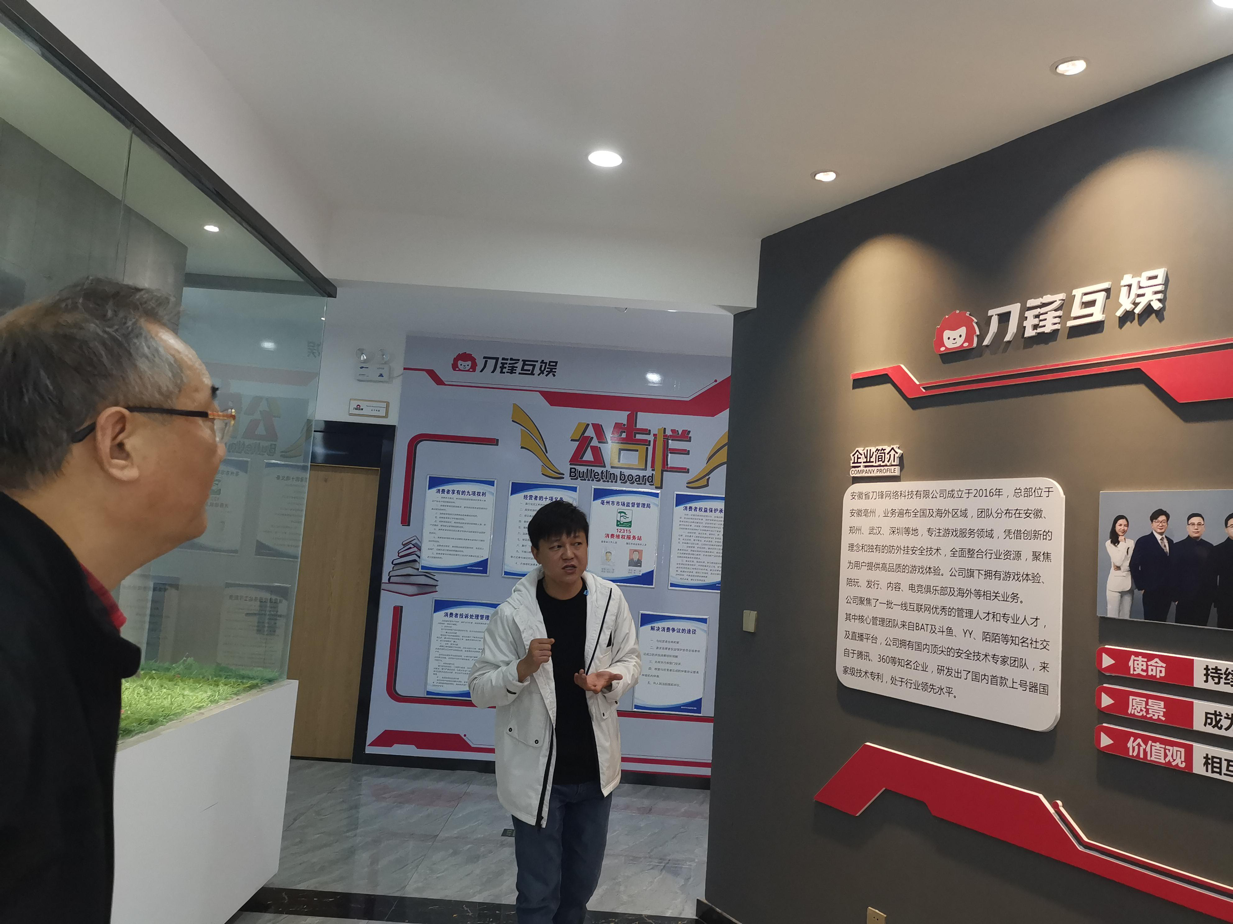 2021年10月26日下午,我院丁自勉书记一行走访安徽省刀锋网络科技有限公司,与公司刘浩经理交流会谈,并就公司与学院学生实习、就业等问题进行磋商,与我院电子竞技运动与管理专业学生有进一步沟通合作的意向。