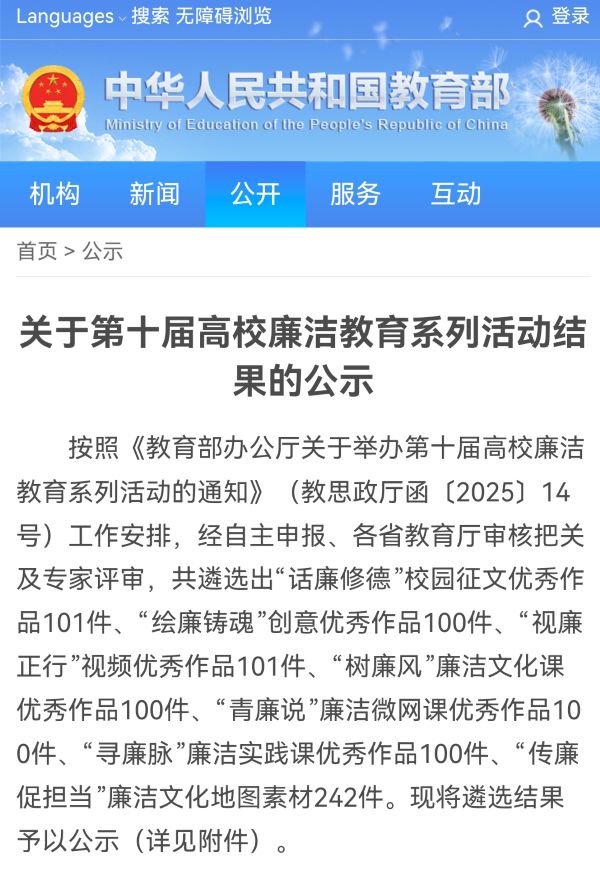 为深入学习贯彻习近平新时代中国特色社会主义思想,聚焦立德树人根本任务,深化新时代高校廉洁文化建设,坚定不移推进高校全面从严治党向纵深发展,近期,教育部举办了第十届高校廉洁教育系列活动。