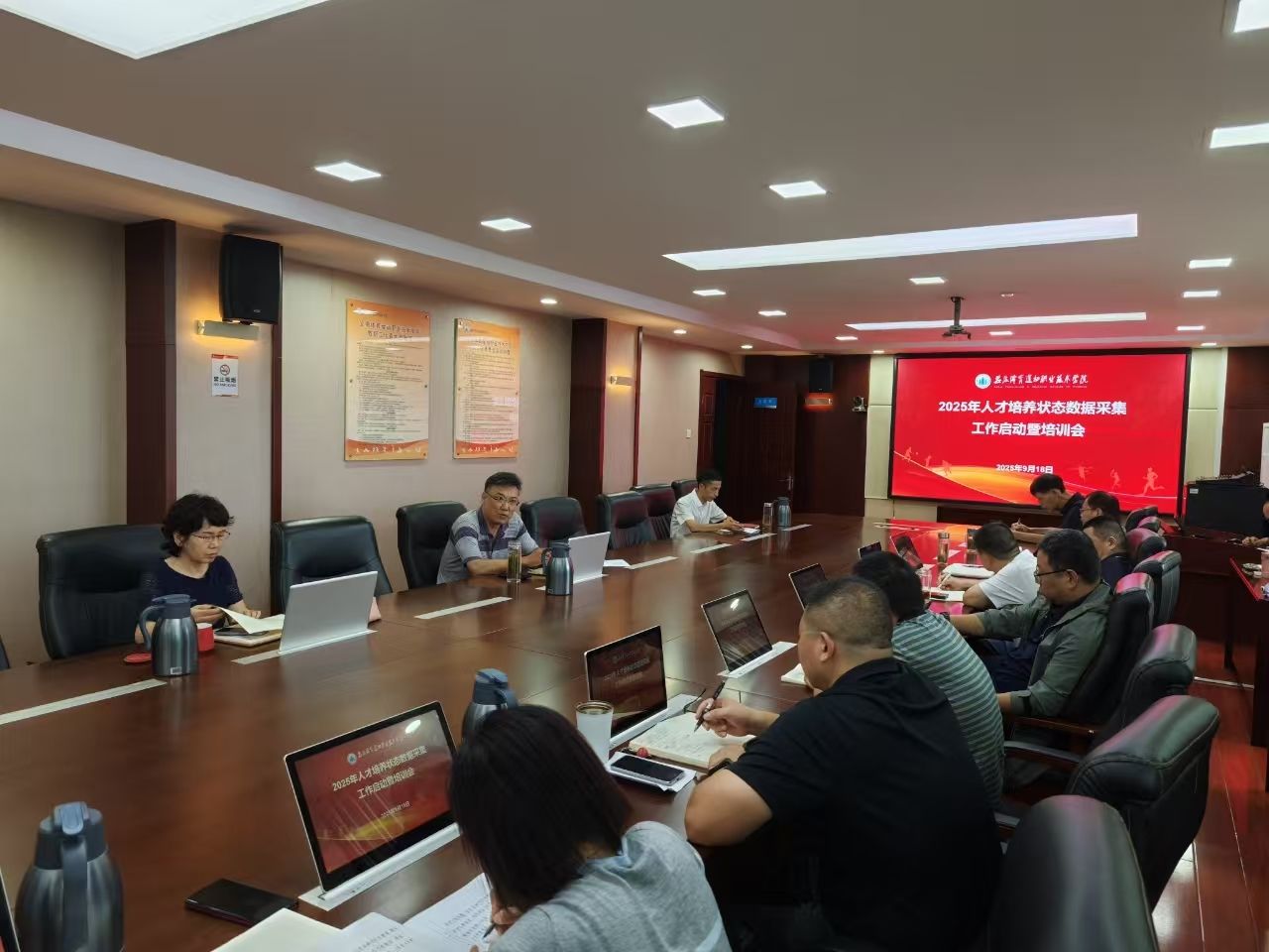 为做好2025年学院人才培养工作状态数据采集工作,9月18日下午,学院在行政楼会议室召开了数据采集工作会议。院领导、各部门主要负责人及数据采集专员参加了会议。