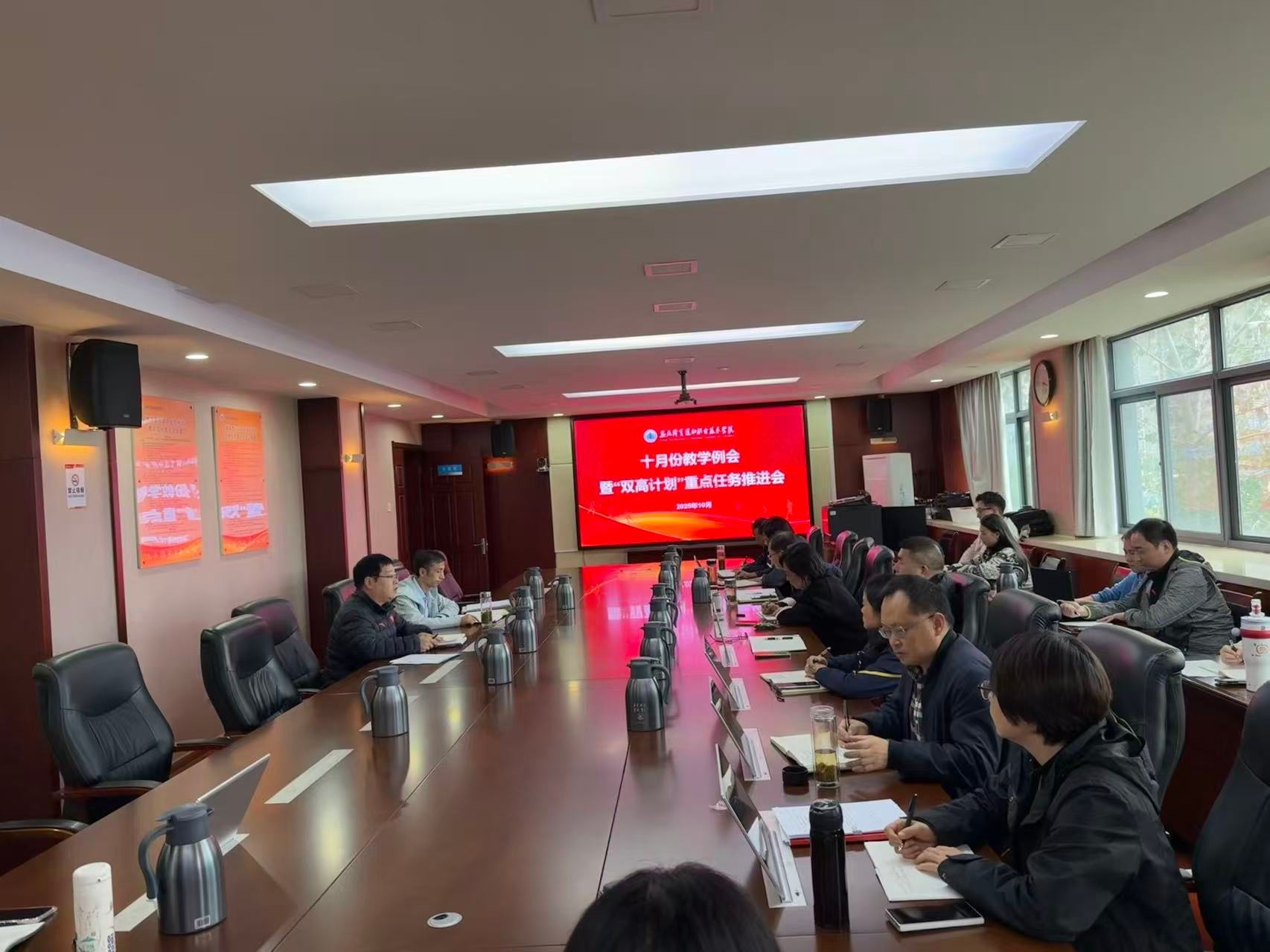 10月29日下午,学院召开10月份教学工作例会暨“双高计划”年度重点任务推进会。院领导、各教学单位主要负责人及分管领导、教学秘书、双高计划核心课程负责人、教科处全体人员参加会议。会议由院党委委员、统战部部长李致富主持。