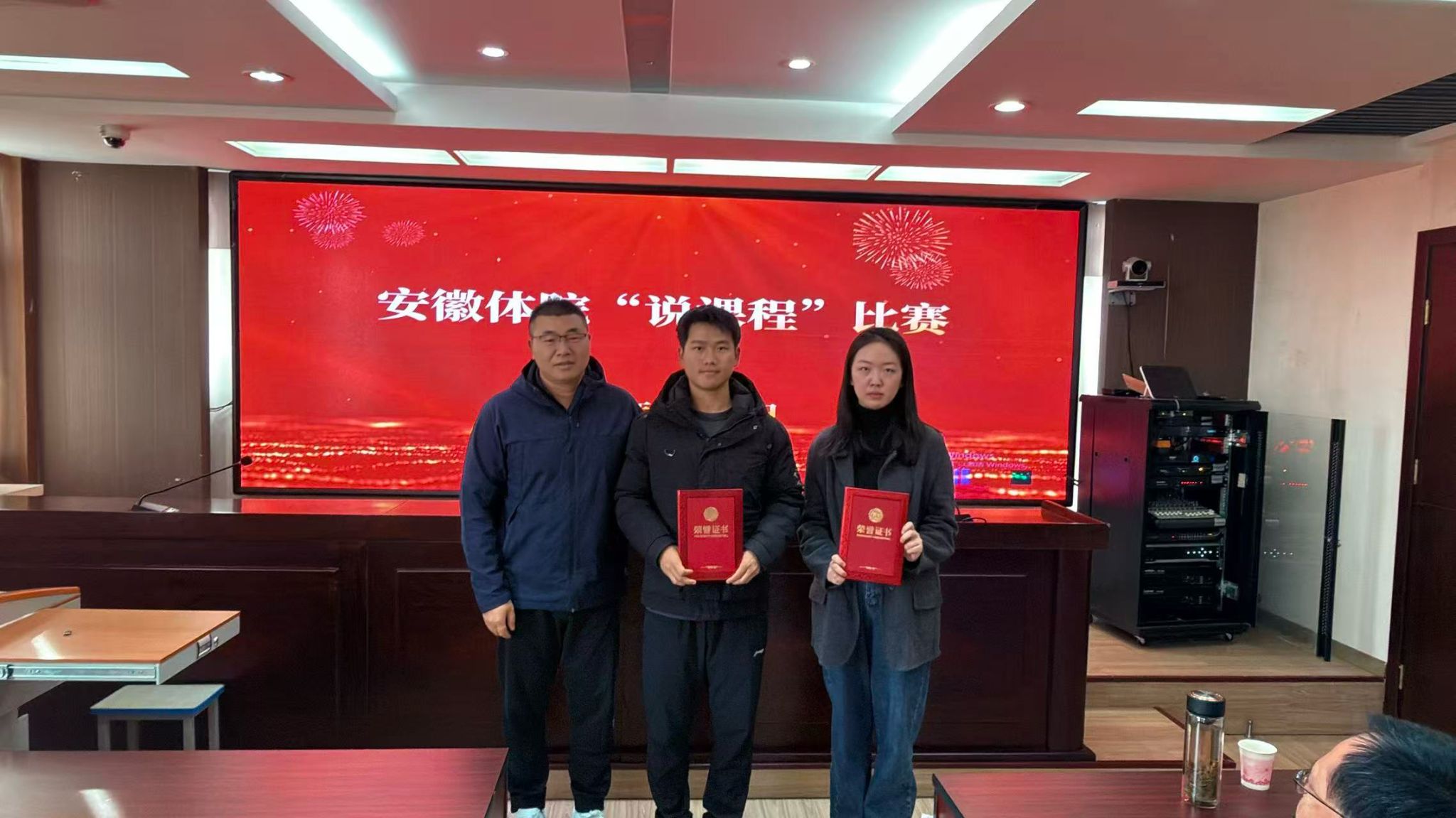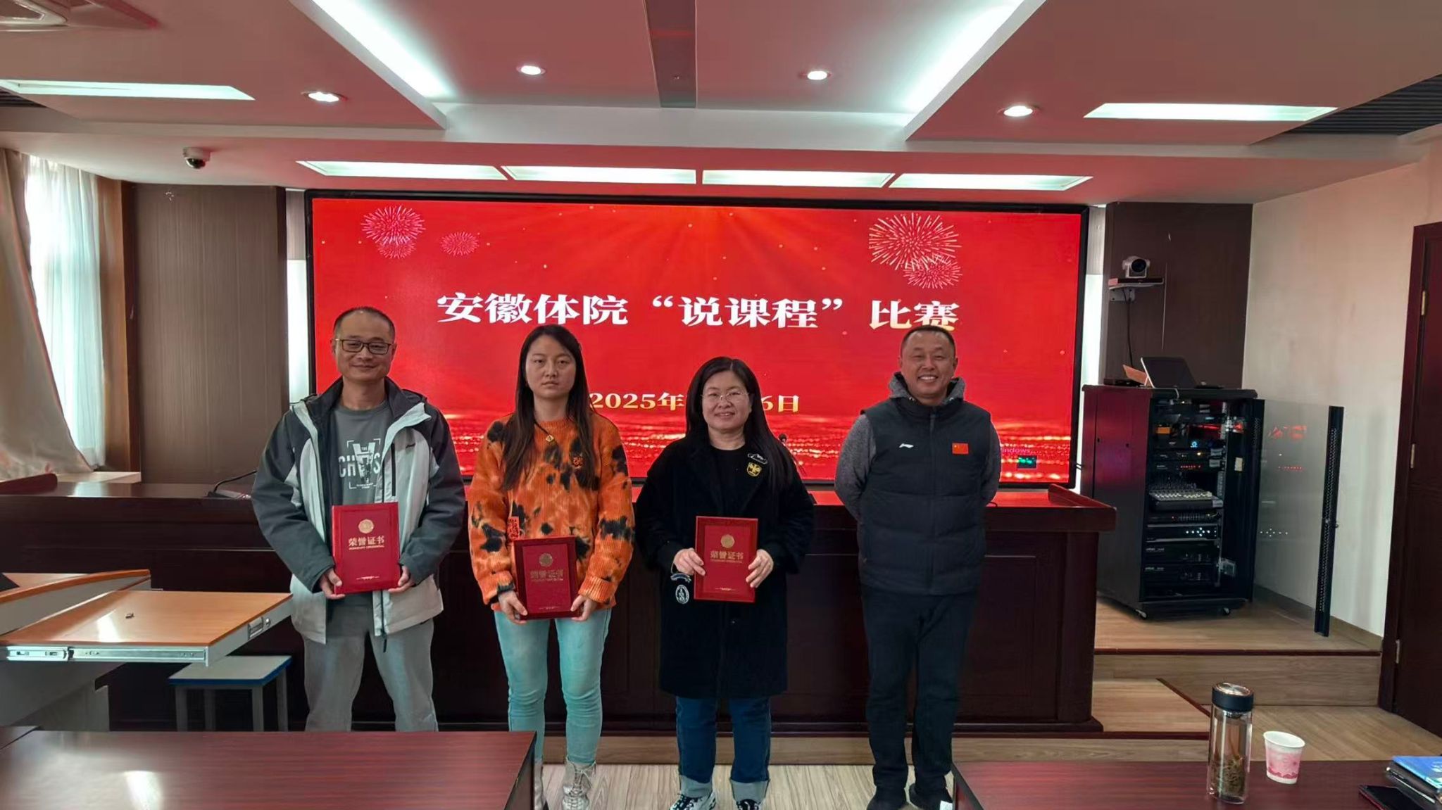 本次比赛特邀思政部主任陆攀教授、体育教育系副主任(主持工作)陈冬梅教授、体育教育系体育保健与康复专业带头人王建月副教授担任评委。经过激烈角逐与公正评审,最终张永景老师荣获一等奖,宋文亭老师、程宝祥老师荣获二等奖,高巍巍老师、张盼盼老师、吴潇老师荣获三等奖。教学系部分管领导张伟、曾正家、刘晓龙、陆攀为获奖选手颁奖。